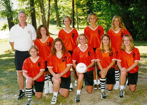 | This is a picture of the Varsity team right before a game. All of us are really good friends and we get along really well most of the time. I had a blast playing with these girls this year. | ![]() |