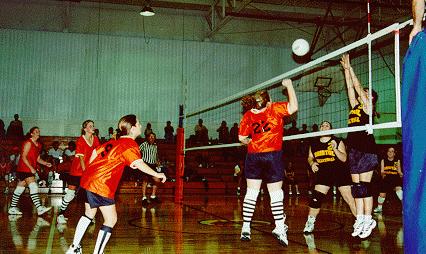 | Here is an action shot from one of the games. I (#22) am spiking the volleyball while my teammates are covering in case I get blocked. | ![]() |