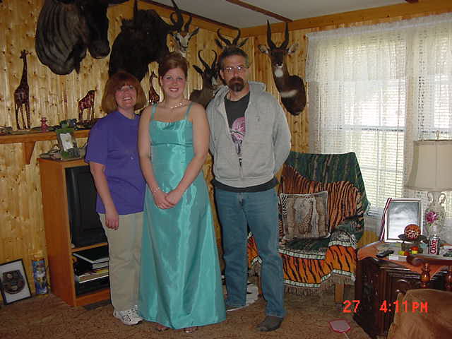 This is a picture of my Mom, Dad, and I before my Senior Prom.