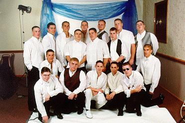 | Here is a picture of the senior boys at their final prom. They all look so cute in their wife-beaters! | ![]() |